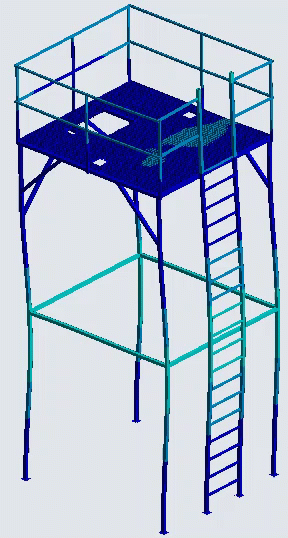 Расчёт на прочность включает оценку статической прочности элементов металлоконструкции и устойчивость металлоконструкции при действии нагрузок: собственный вес конструкции и вес обслуживающего персонала с оборудованием.