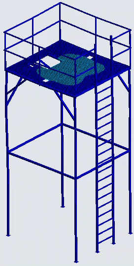 Выполнен расчет на прочность и устойчивость металлоконструкции площадки обслуживания для емкости с осмотической водой.