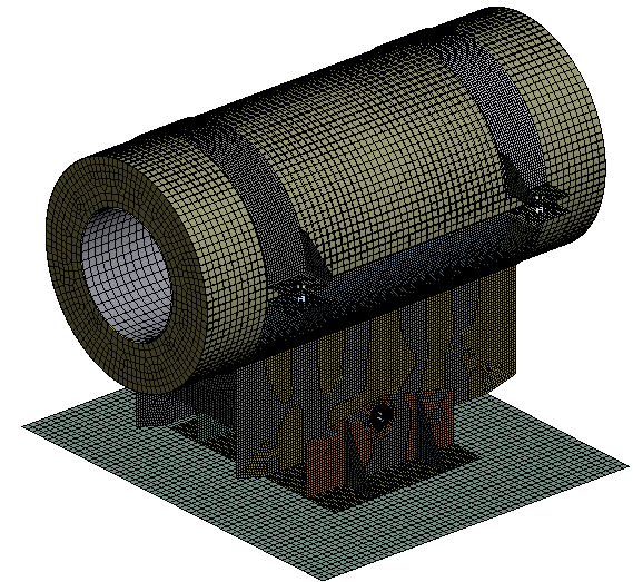 Стальная конструкция опоры в расчёте рассмотрена как единая пространственная система. Оценка статической прочности элементов опоры выполнена методом конечных элементов в трёхмерной постановке с применением идеального упругопластического материала.