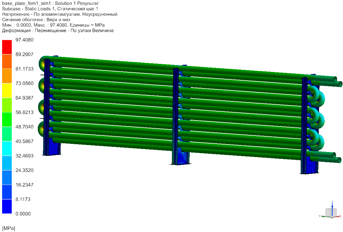 По результатам расчёта подтверждено условие прочности трубных досок, изготовленных из стали AISI 310S, в заданных режимах эксплуатации в соответствии с требованиями НТД.